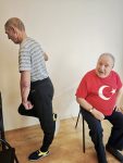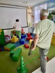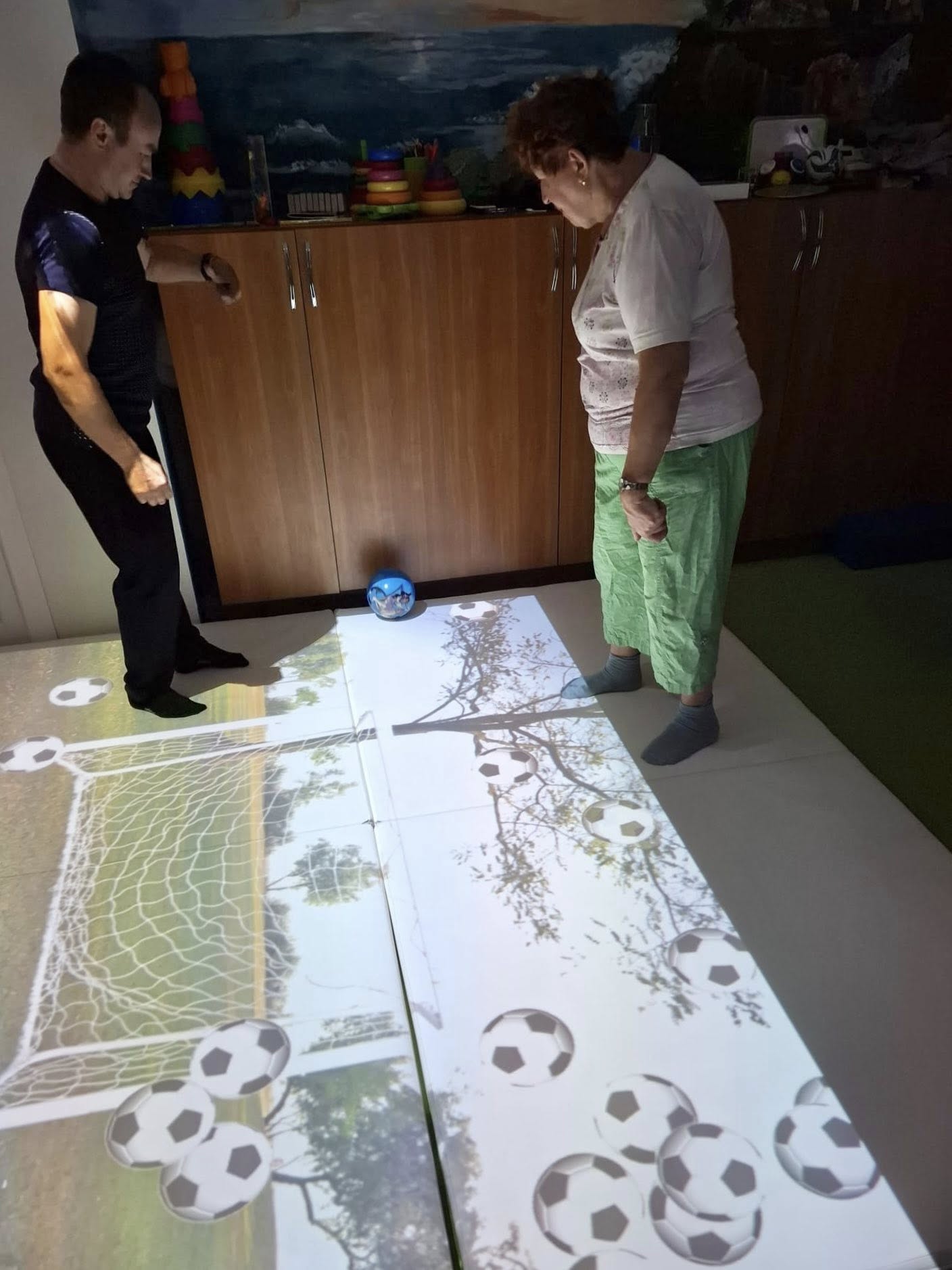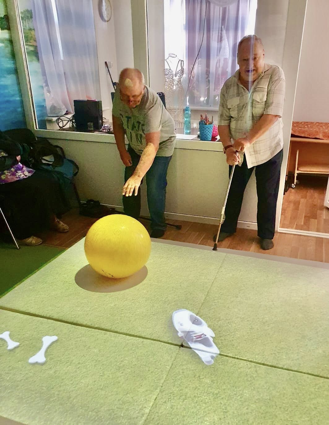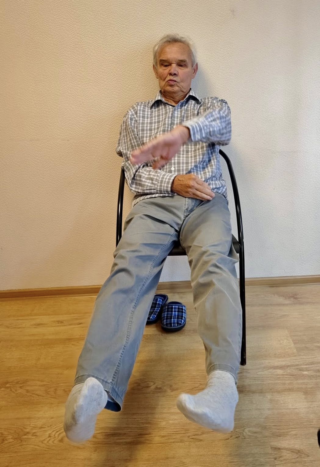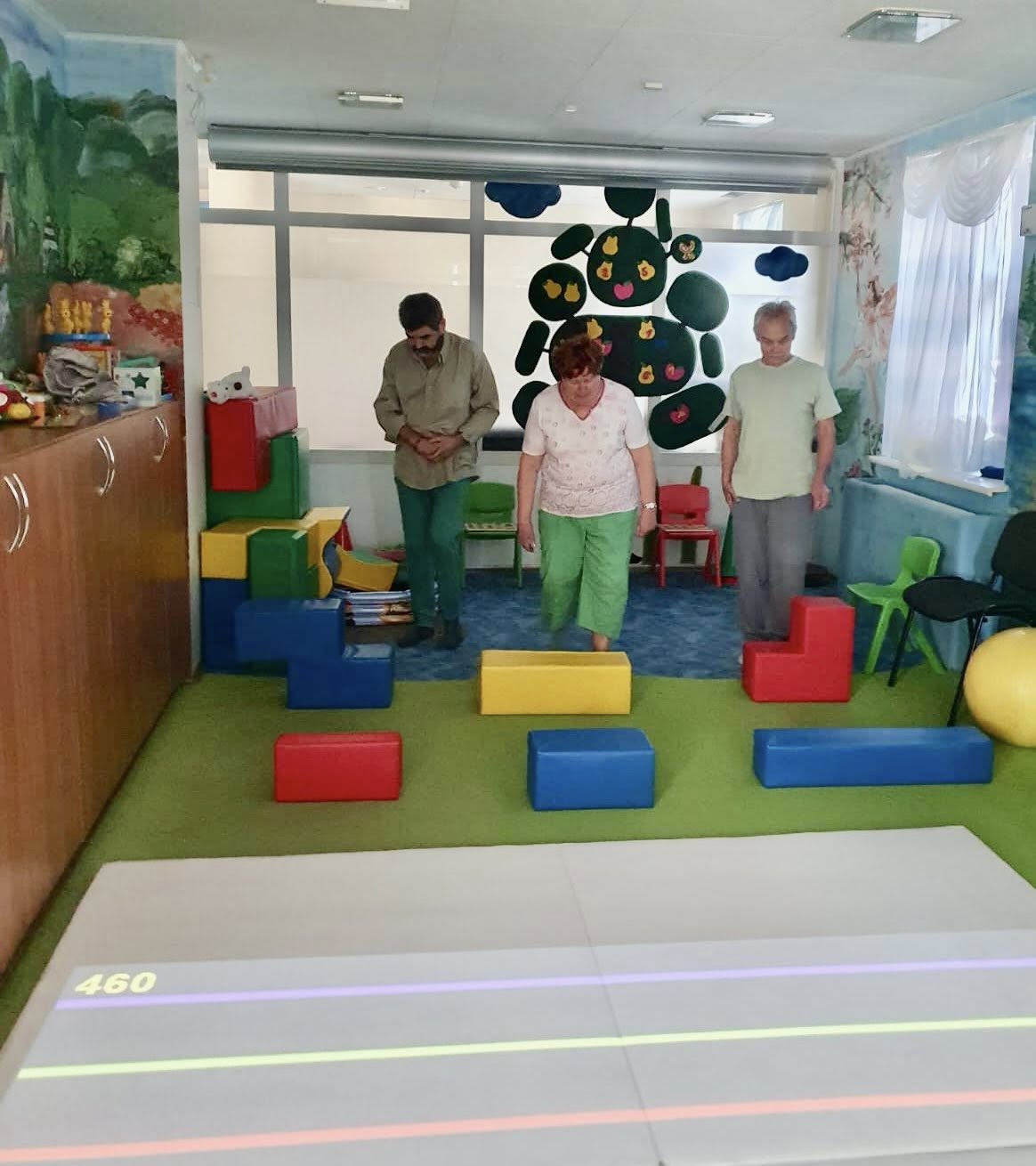 Наши вигоровцы в малых группах по три человека в увлекательной форме развивают концентрацию внимания, способность согласовывать речь и движение, а также умение удерживать баланс в движении при выполнении заданий, когда надо учитывать одновременно несколько условий и др. Для людей, перенесших инсульт, это бывает совсем непростые задачи, требующие осознанности , распределения внимания и концентрации.