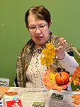 Первая мастерская в этом сезоне. Сделали осеннюю композицию с тыквой и листьями.