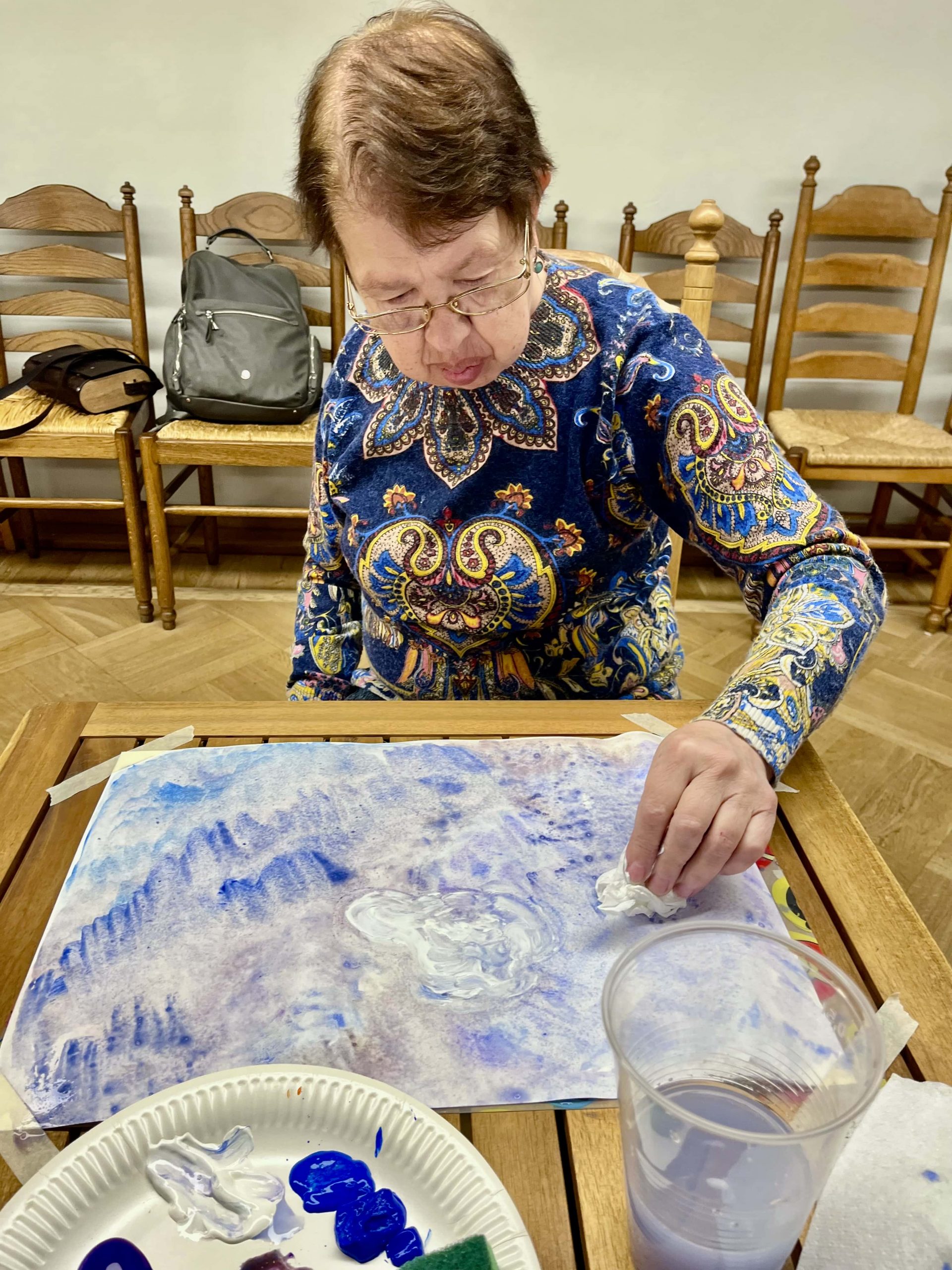 Как делились потом вигоровцы, им было увлекательно раздувать краску, весело тыкать палочкой цветочки и радостно увидеть то, что получилось. «Надул, затыкал и получился шедевр», как сказал один из вигоровцев.